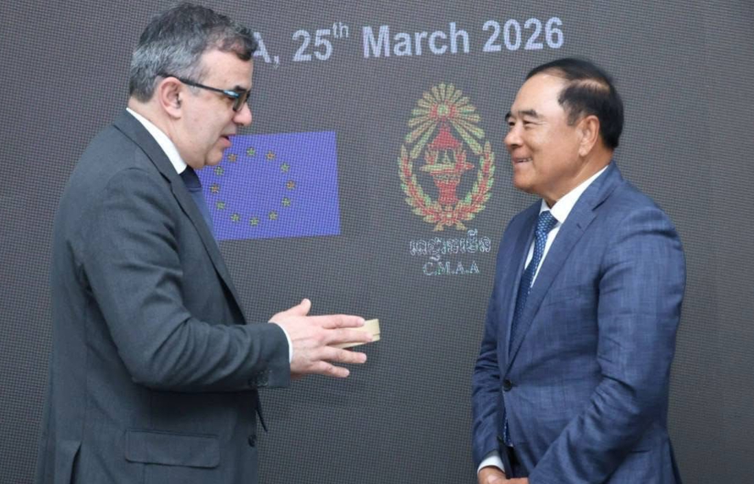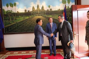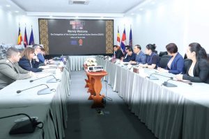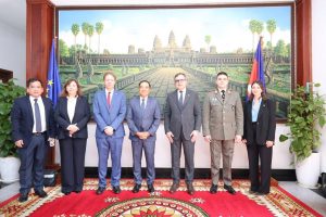 ថ្ងៃទី២៥ ខែមីនា ឆ្នាំ២០២៦ នៅទីស្នាក់ការអាជ្ញាធរមីន ឯកឧត្តមបណ្ឌិត លី ធុជ ទេសរដ្ឋមន្រ្តី អនុប្រធានទី១ អាជ្ញាធរមីន បានទទួលជួបពិភាក្សាការងារជាមួយ លោក Cosmin Dobran នាយកទទួលបន្ទុកសន្តិភាព ភាពជាដៃគូ និងគ្រប់គ្រងវិបត្តិ នៃអង្គភាពសេវាកិច្ចការបរទេសរបស់សហភាពអ៊ឺរ៉ុប (European External Action Service_EEAS) និងគណៈប្រតិភូ ដើម្បីផ្លាស់ប្តូរយោបល់ពីស្ថានភាពព្រំដែននិងការគាំទ្រកិច្ចការបោសសម្អាតមីន។