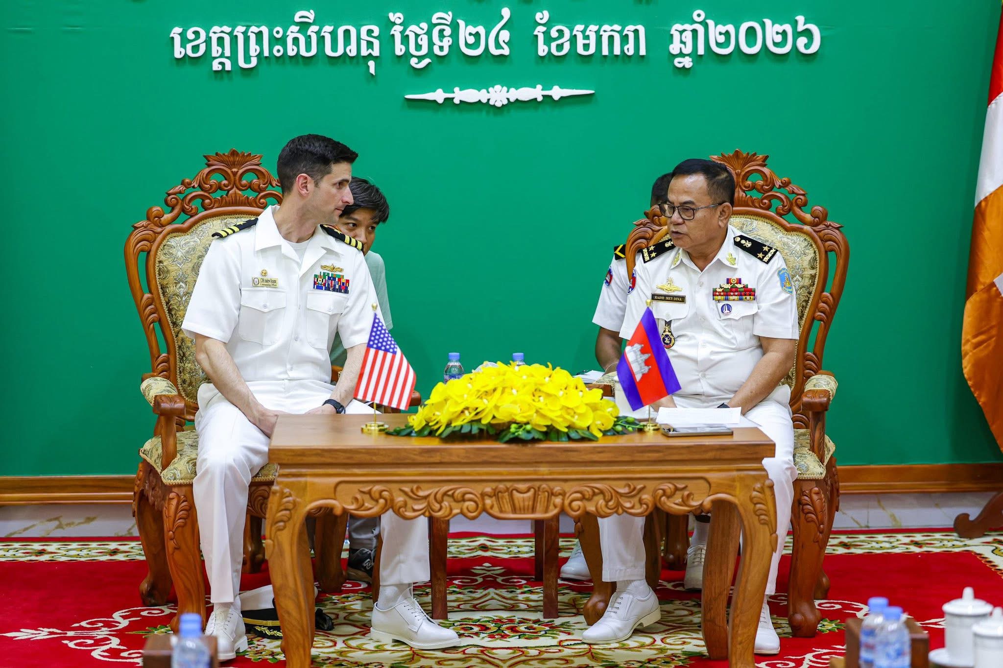 កាលពីរសៀលថ្ងៃទី២៤ ខែមករា ឆ្នាំ២០២៦ គណៈប្រតិភូកងទ័ពជើងទឹកសហរដ្ឋអាម៉េរិក ដឹកនាំដោយលោកលោកវរនាវីទោ Andrew J. Recame មេបញ្ជាការនាវា USS CINCINNATI (LCS 20) និងសហការី អញ្ជើញចូលជួបសម្តែងការគួរសម និងពិភាក្សាការងារជាមួយ ឧត្តមនាវីទោ ម៉ី ឌីណា មេបញ្ជាការមូលដ្ឋានសមុទ្ររាម ដើម្បីពង្រឹងទំនាក់ទំនង សាមគ្គីភាព និងកិច្ចសហប្រតិបត្តិការរវាងកងទ័ពជើងទឹកប្រទេសទាំងពីរ ឲ្យកាន់តែល្អទ្វេឡើងថែមទៀត។